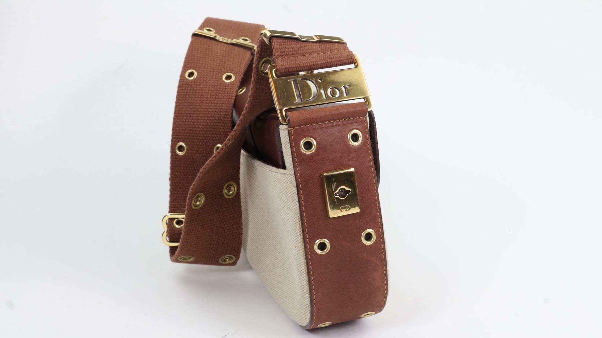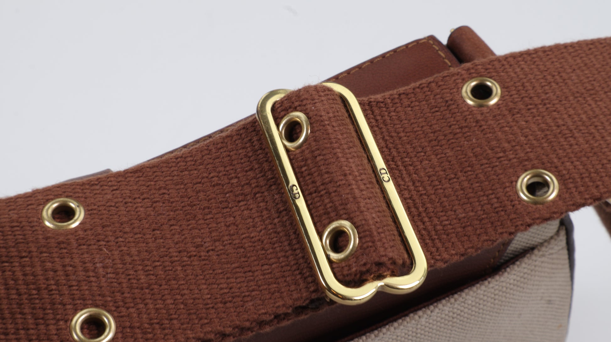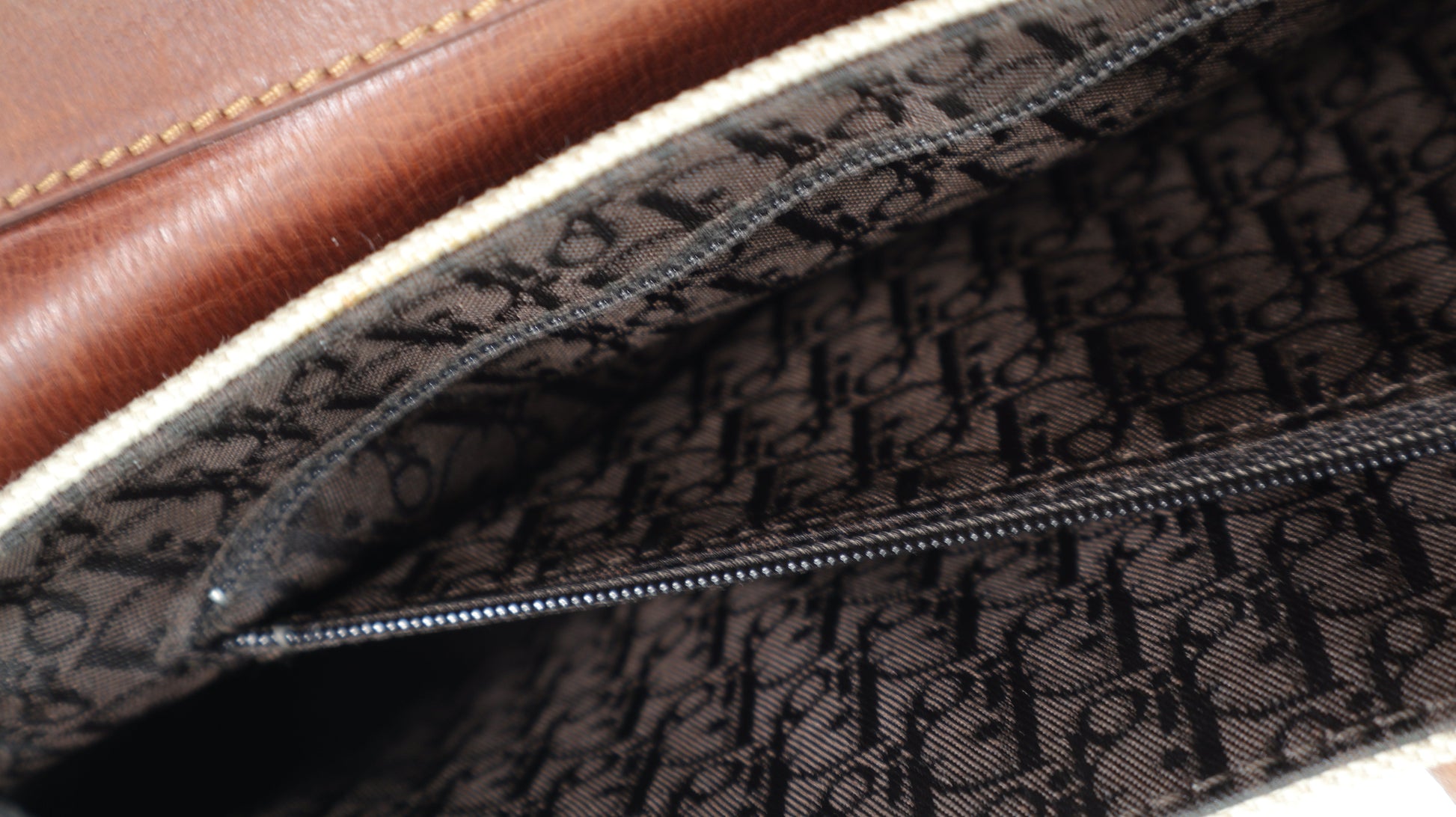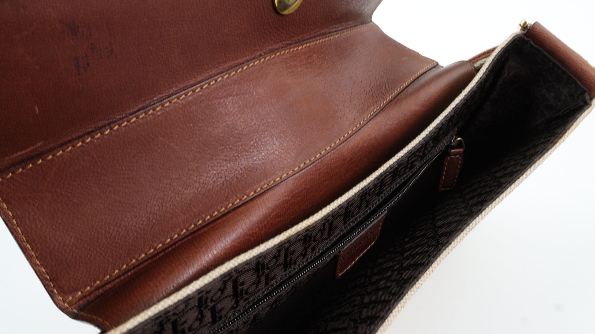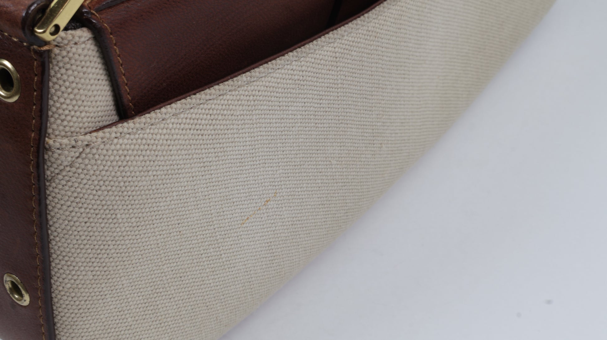 Condition: Very good. Wear due to age and use. Appears with minimal stains on leather and the canvas.